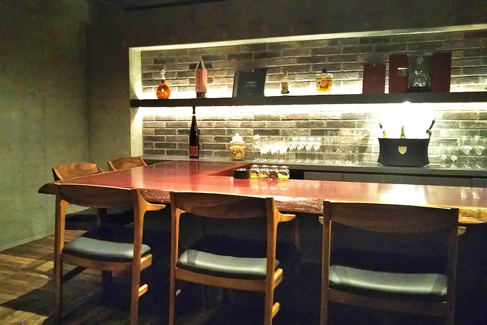 ようこそ、ワインサロン「クーラント」へ。オフィスビルの中にある紹介制のワインサロンです。お休みを取られたお客様には、特別にご紹介させていただいております。本格的なインテリアの中で、格別な時間をお約束します。パープルハートの一枚板で作られた7mのカウンターテーブルや、モンキーポットの特注アームチェアなど、木の温もりを感じながら、ゆったりとおくつろぎください。フランス産を中心に、飲み頃を迎えた熟成ワインを100種類以上ご用意しています。ワインと相性の良い料理で、大切な方との時間をお過ごしください。 本物の素材にこだわったサロンのインテリアは、落ち着いた上質な空間を演出します。【お席のみのご予約】ご注文は当日に